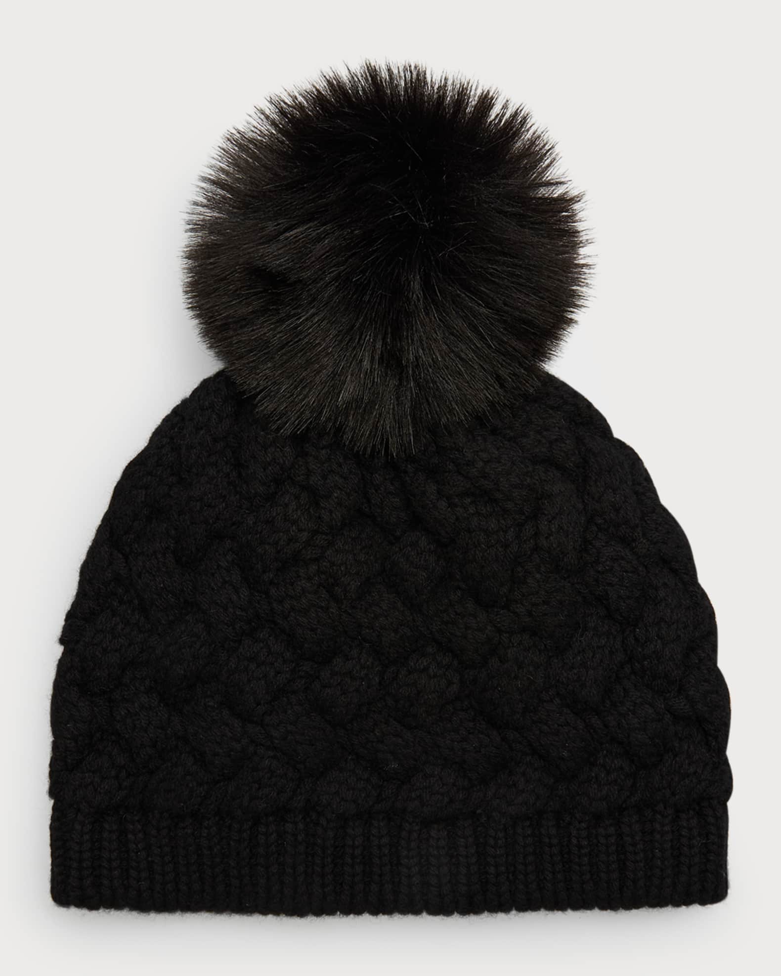 10. Raffaello Bettini Dallas Pie Tart Stitch Cashmere Beanie W/ Faux Fur Pom – (regular $260) $195